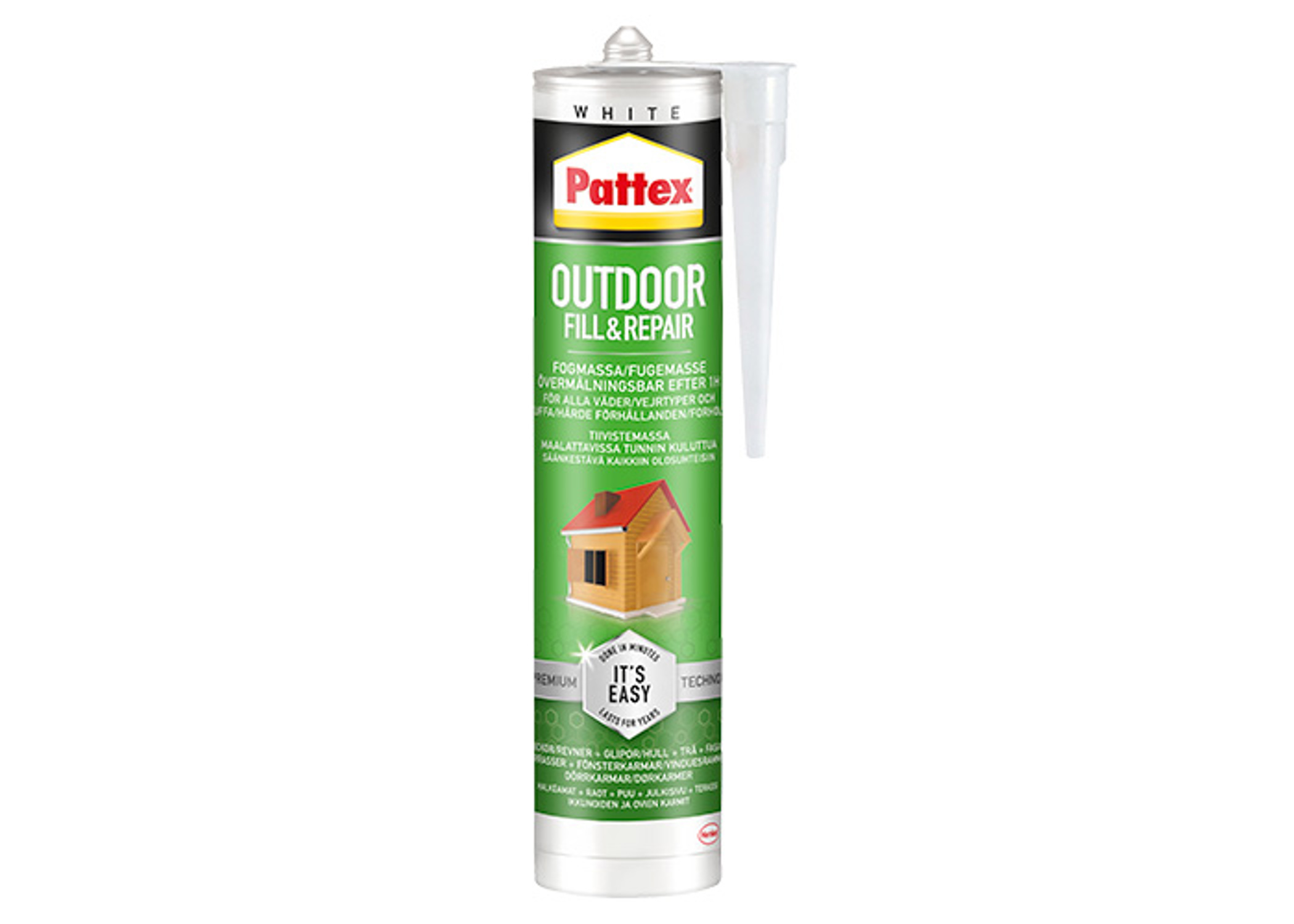 Når der skal lappes revner i muren, tætnes omkring døre og vinduer eller stoppe træk og fugt udefra, så er Pattex Udendørsfuge Fill & Repair den bedste ven i værktøjskassen. Den er lavet til dig, der gerne vil fikse tingene selv – hurtigt, nemt og uden bøvl.